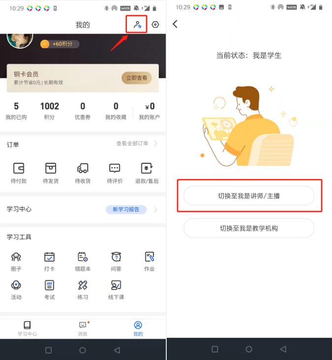 切换身份:登录鹅学习APP—我的—切换角色—我是讲师